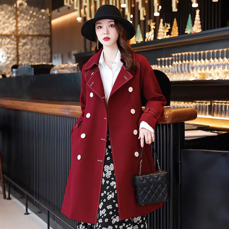Featuring a double-breasted style, this jacket not only provides a flattering silhouette but also adds a touch of sophistication to your outfit. Available in a stunning red hue, it's perfect for making a bold statement, whether you're heading to work or a night out.