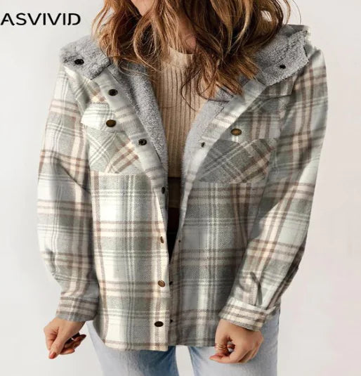 Available in sizes from S to XXL, this jacket is designed to flatter every body type. Embrace the changing seasons with confidence and style in our plaid hooded jacket.